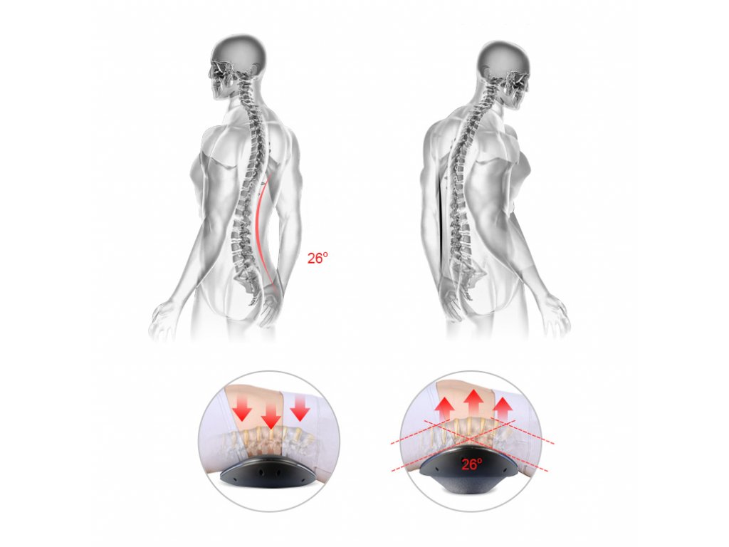 - FYZIOLOGICKÉ PROTAŽENÍ - protažení páteřních struktur probíhá v úhlu 26°, který přesně odpovídá fyziologickému postavení páteře.